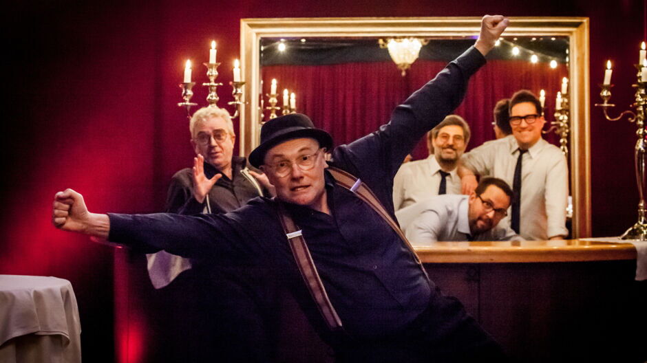Bewaffnet mit ihrer gut gelaunten Band, die mühelos alle Silvesterbeschwerden hinwegswingt, -jazzt und -poppt, öffnen sie Tür und Perspektive auf das fast noch jungfräuliche Jahr: Bass, Gitarre, Schlagzeug und Eichhorn sorgen gemeinsam für die nötige musikalische Brennschärfe, wenn Thomas Pigor spitze Schlaglichter auf das tagesaktuelle Hauptgeschehen an gesellschaftlichen Nebenschauplätzen wirft. Neben Hitler und Heidegger beleben dabei auch maulende Rentner, Fleischereifachverkäuferinnen, Hausschweine und ausrastende Gastgeber die gespenstische Szenerie …