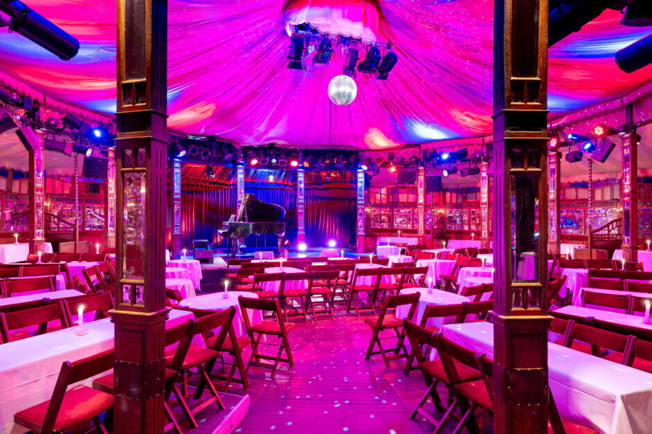 Tucked away in Wilmersdorf, you’ll find a little gem where glamour never went out of style – a place that recalls Berlin’s night-loving 1920s. Step into BAR JEDER VERNUNFT, a Spiegelzelt (mirror tent) – unassuming from the outside, a sparkling ballroom inside. Countless mirrors multiply the magic, turning an intimate space into a world where anything feels possible.